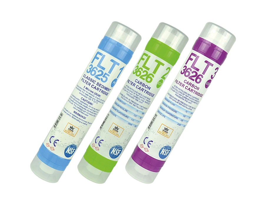 3. AŞAMA: AQUASET 12 Inline Deluxe CTO Blok Karbon Filtre: Klor, renk, tat ve koku veren eriyik gazlar, artıklar ve organik maddeleri filtreleyerek suyu kimyasal maddelerden arındırır.