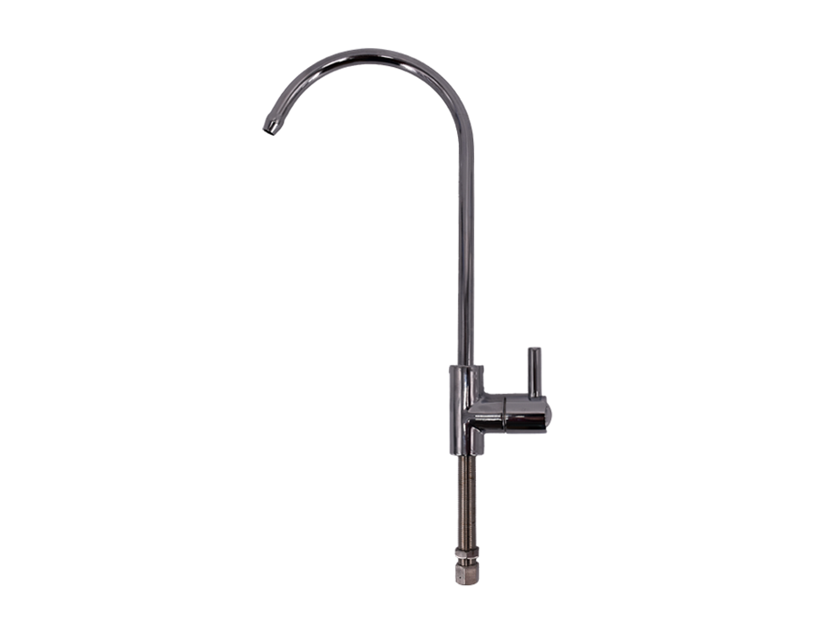 Su arıtma Lüks Musluk. Tüm arıtma cihazlarından elde edilen suyu konforlu bir şekilde kullanabilmek için tasarlanmıştır. 360 derece dönebilen başlığı ile ergonomik kullanım sağlar. Tezgaha ve braket aparatı kullanılarak duvara monte edilebilir.